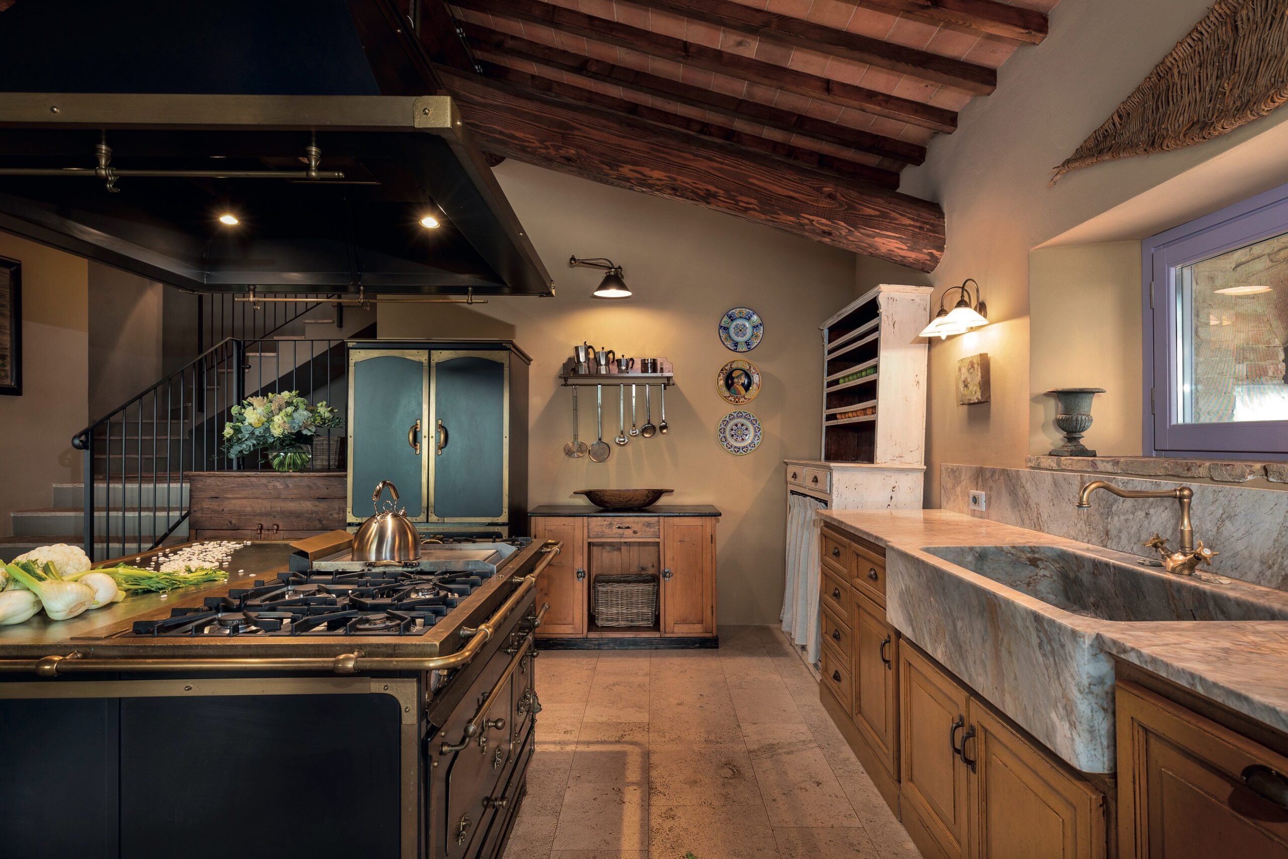 The house itself is a marvel of traditional Tuscan architecture. The exterior, with its warm, earthy tones and rustic stonework, blends seamlessly with the landscape. Inside, the design is both grand and inviting. The expansive ground floor features a spacious living area where a traditional Tuscan fireplace provides a cozy focal point. The dining area and gourmet kitchen flow naturally from this space, creating an environment that is both open and intimate, ideal for gatherings of family and friends.