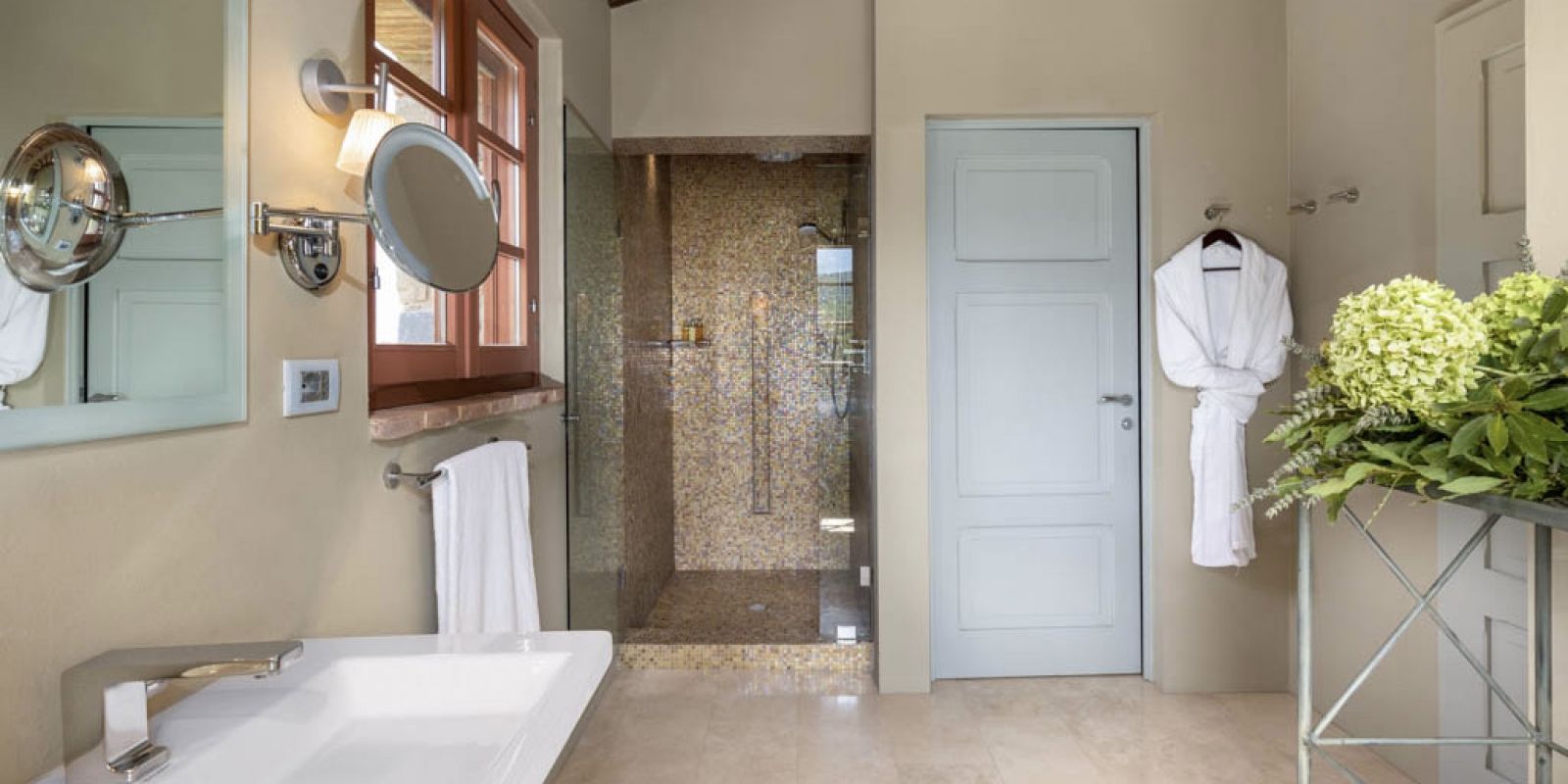 - Piscina a sfioro riscaldata e rivestita con piastrelle di vetro