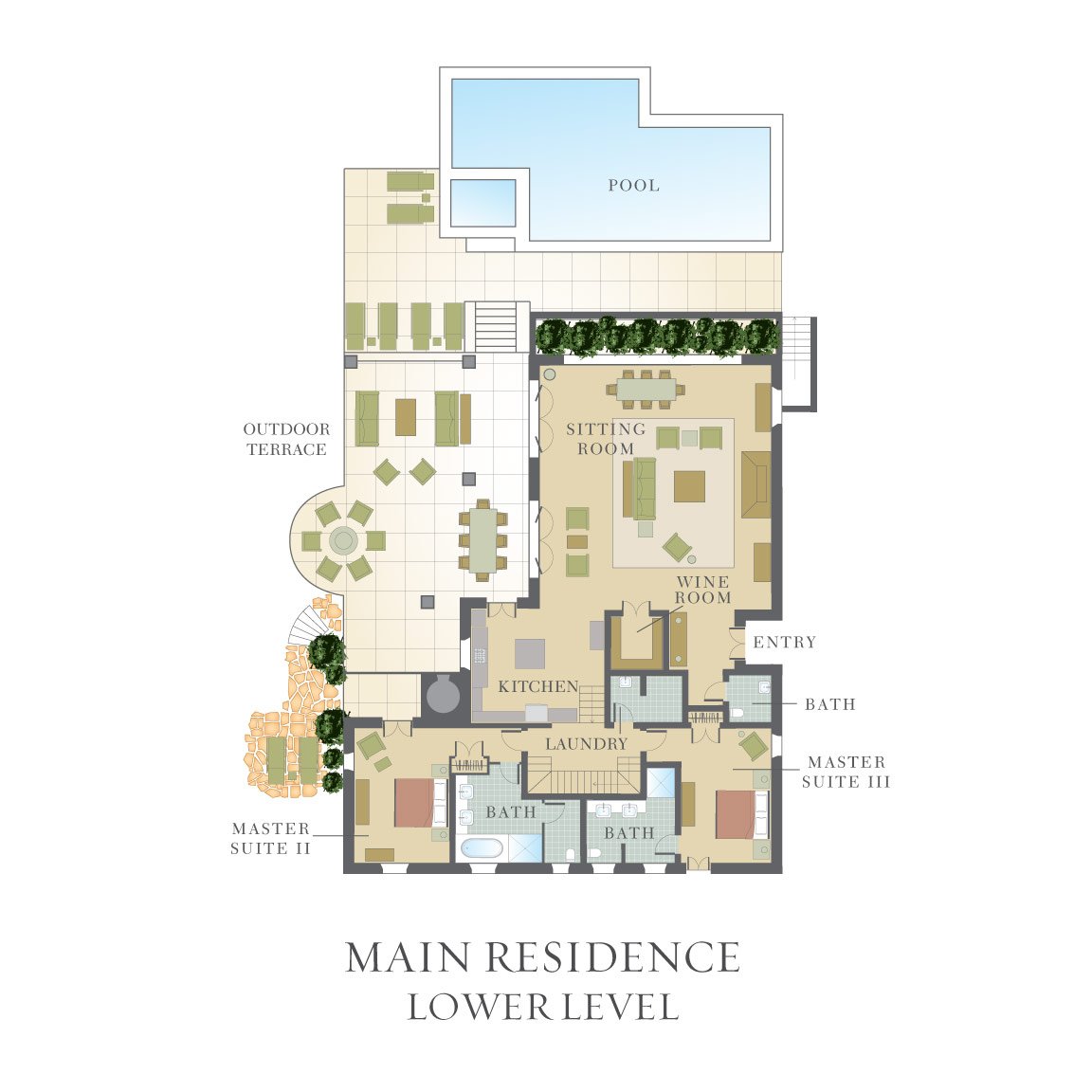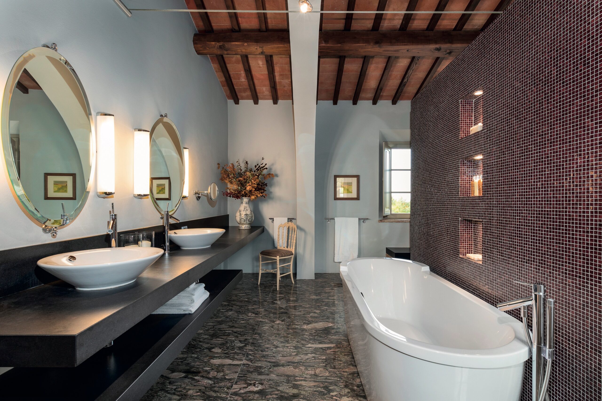 Located near the charming village of Mensano, La Fonte is surrounded by nature and offers a private, rejuvenating retreat. Among the most classically inspired of all the farmhouses on the estate, the exquisitely furnished residence enjoys a grand main living level where kitchen, dining and living areas flow naturally. Spaces open out to the patio which overlooks the infinity pool and inviting hot tub.