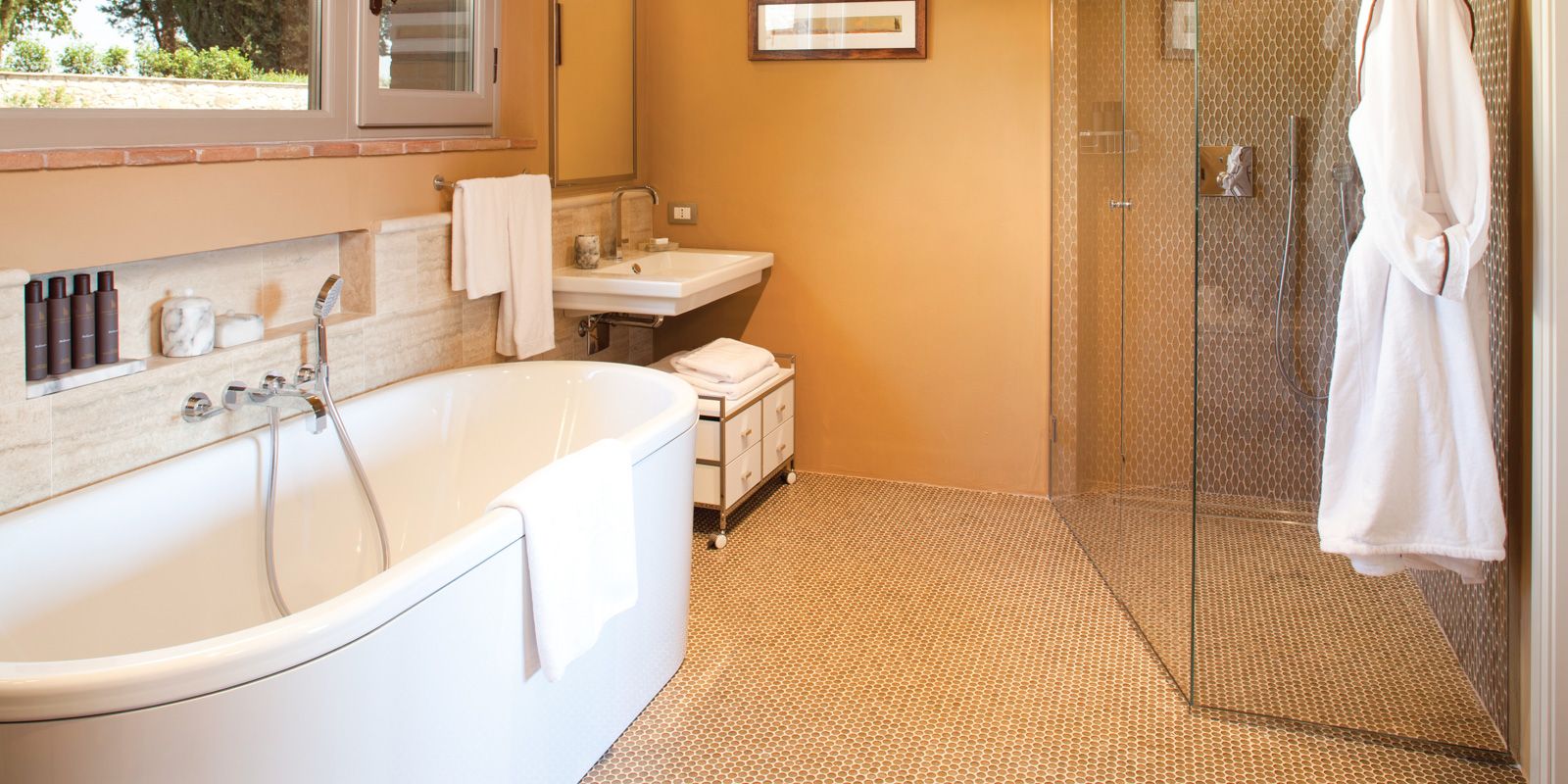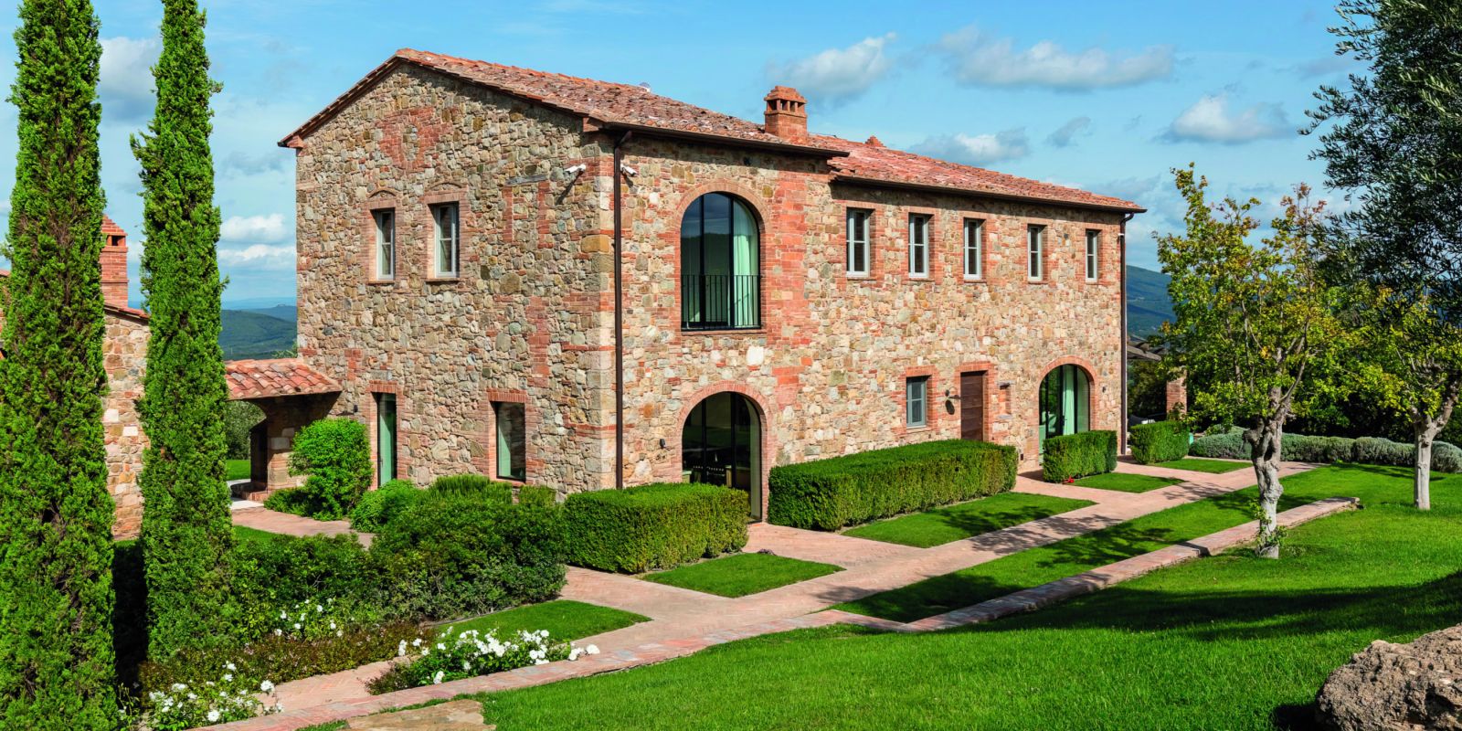 Beautifully situated throughout our 4,200-acre estate are 14 fully restored farmhouses capturing the essence of all that is Tuscany. Each three- to eight-bedroom farmhouse showcases stunning views of the countryside and features distinctive amenities ranging from gourmet Italian kitchens and bocce courts to outdoor wood-burning ovens, fire pits and heated glass-tiled infinity pools.